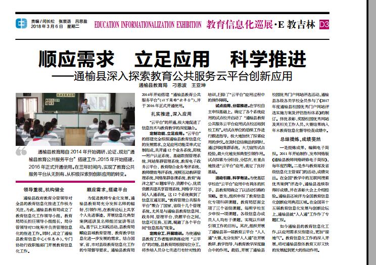 《E教吉林》头条宣传通榆县教育信息化成绩2