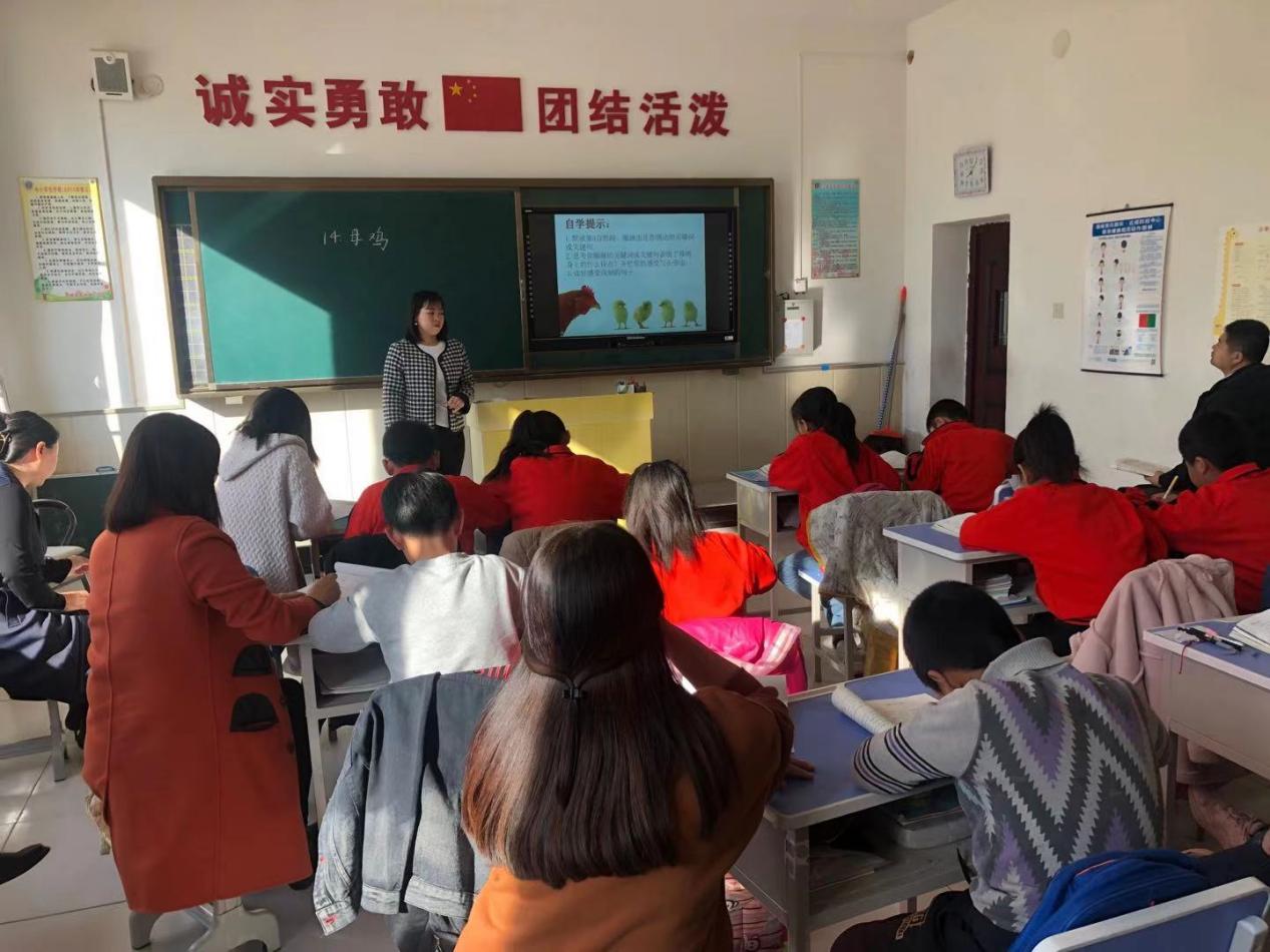 领导示范课,作课领导邢冬阳。邢老师讲授的课是四年级第四单元第二课《母鸡》,邢老师紧紧抓住老舍先生对母鸡态度前后两次情感变化,让学生自读自悟,品析母鸡妈妈的特点,从而让学生联系生活实际,体会母爱的伟大。